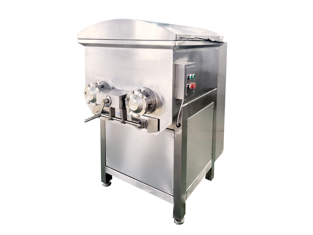 →雙軸雙速拌餡機  →型號 150/350/600/1200升  →功能  適合各種餃子、包子等肉類及蔬菜類餡料的攪拌  →特色  1、采用平行雙軸結構,螺旋板式槳葉,物料在料斗中翻動的同時作圓周運動,同時完成軸向回流,使各種物料攪拌的更加均勻。  2、采用雙速雙動力,根據所拌餡的種類及工藝選擇不同的轉速和不同的運轉方式進行攪拌。  3、上蓋后端設有行程開關,根據上蓋的開合,自動切斷或接通電源,操作方便,安全可靠。  4、整機采用不銹鋼制造,易于清洗,美觀大方。符合國家衛生標準。  5、可根據客戶的需求定制自動進水,自動起蓋,自動排料等功能。  →主要技術參數產品型號面斗容積(L)額定功率(kw)攪拌轉速(rpm)額定電壓(v)外形尺寸(長×寬×高)SZJ   150升1501.5/2.442/84380920×665×990SZJ   350升3502.2/3.342/843801180×880×1390SZJ   600升6003.0/4.542/843801430×1080×1590SZJ  1200升12005.0/7.542/843801600×1530×2750